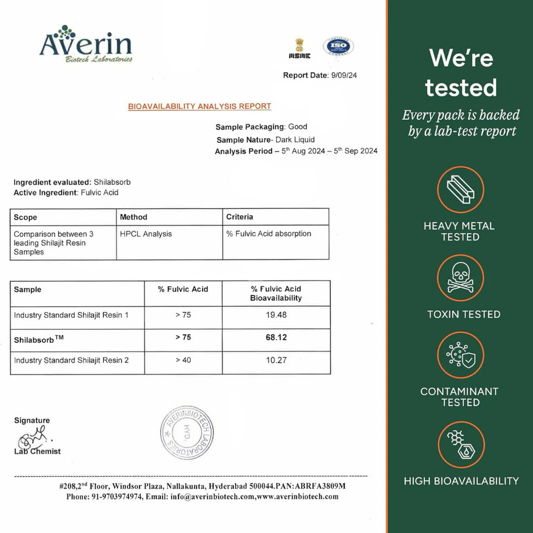 We use ShilAbsorb® technology for 3.5× higher absorption, combined with clinically backed ingredients like KSM-66 Ashwagandha, Maca, and more — all crafted to support energy, focus, and hormone balance.